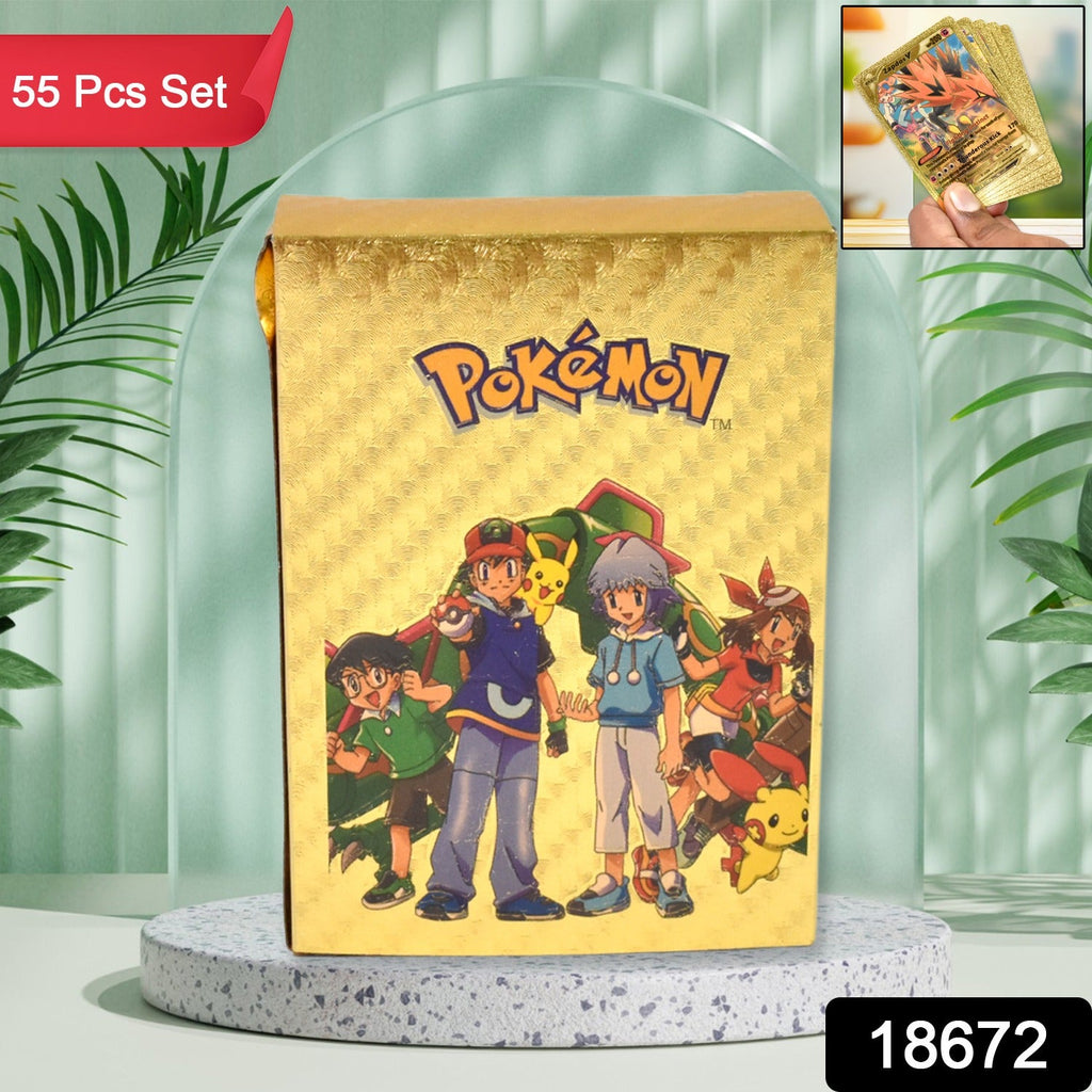 Pocket Monster Golden Trading Playing Cards Premium Quality Playing Cards Foil Card Assorted Card, This cards can make your kids play all the time (55 Pcs Set)